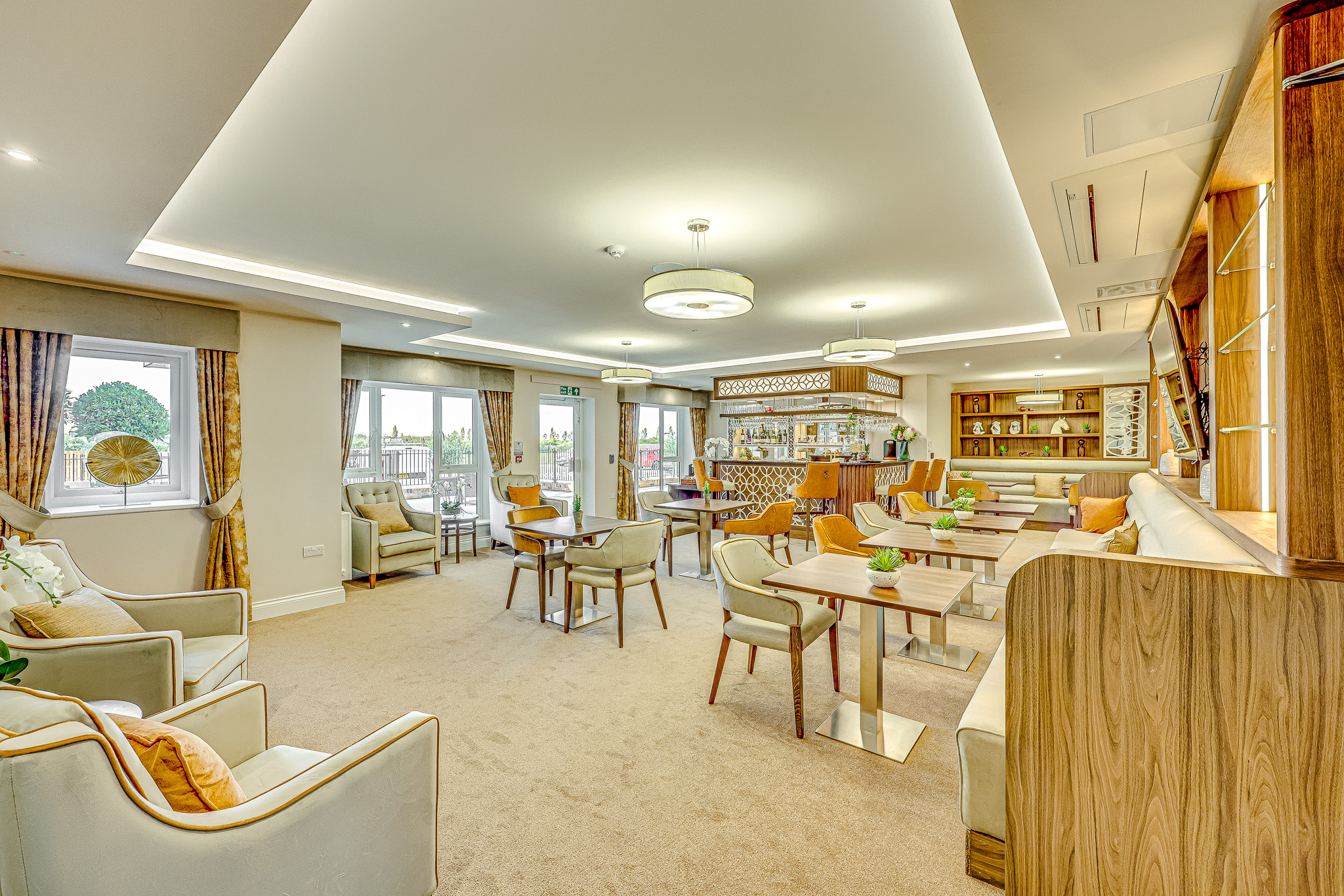 Residents can relax in elegant, comfortable lounges with plush seating, or enjoy meals in beautiful dining rooms that boast large windows overlooking the landscaped views of Canvey Island.